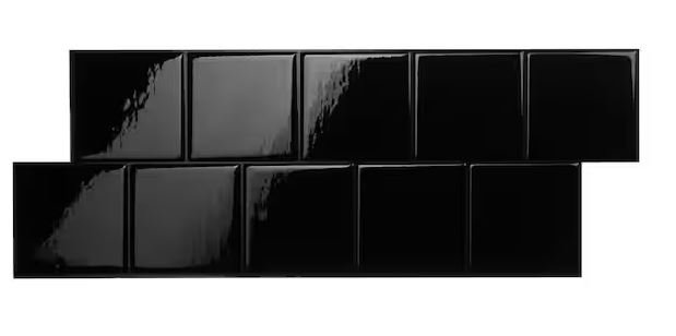 The peel and stick tile backsplash looked like 2x2 inch glossy black tiles. It stayed on well where I placed it once, but the pieces that were taken off to straighten didn’t - so again I knew this was a short term fix. We had a professional install black ceramic tiles with black grout before we listed our house for sale. It looks identical!